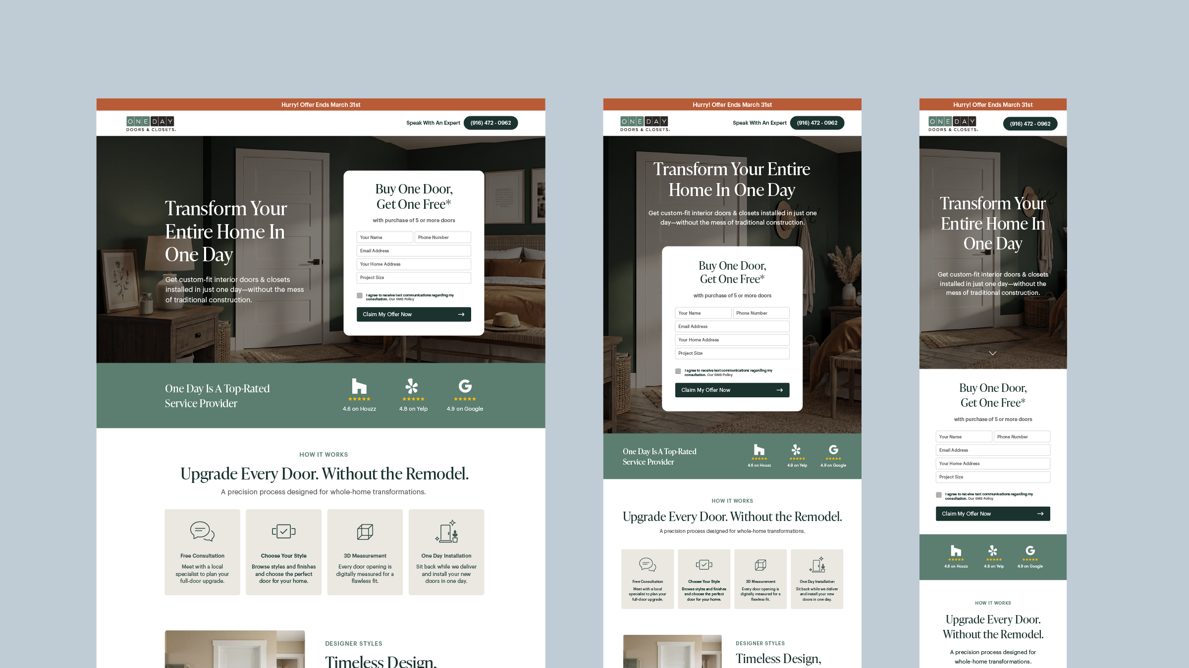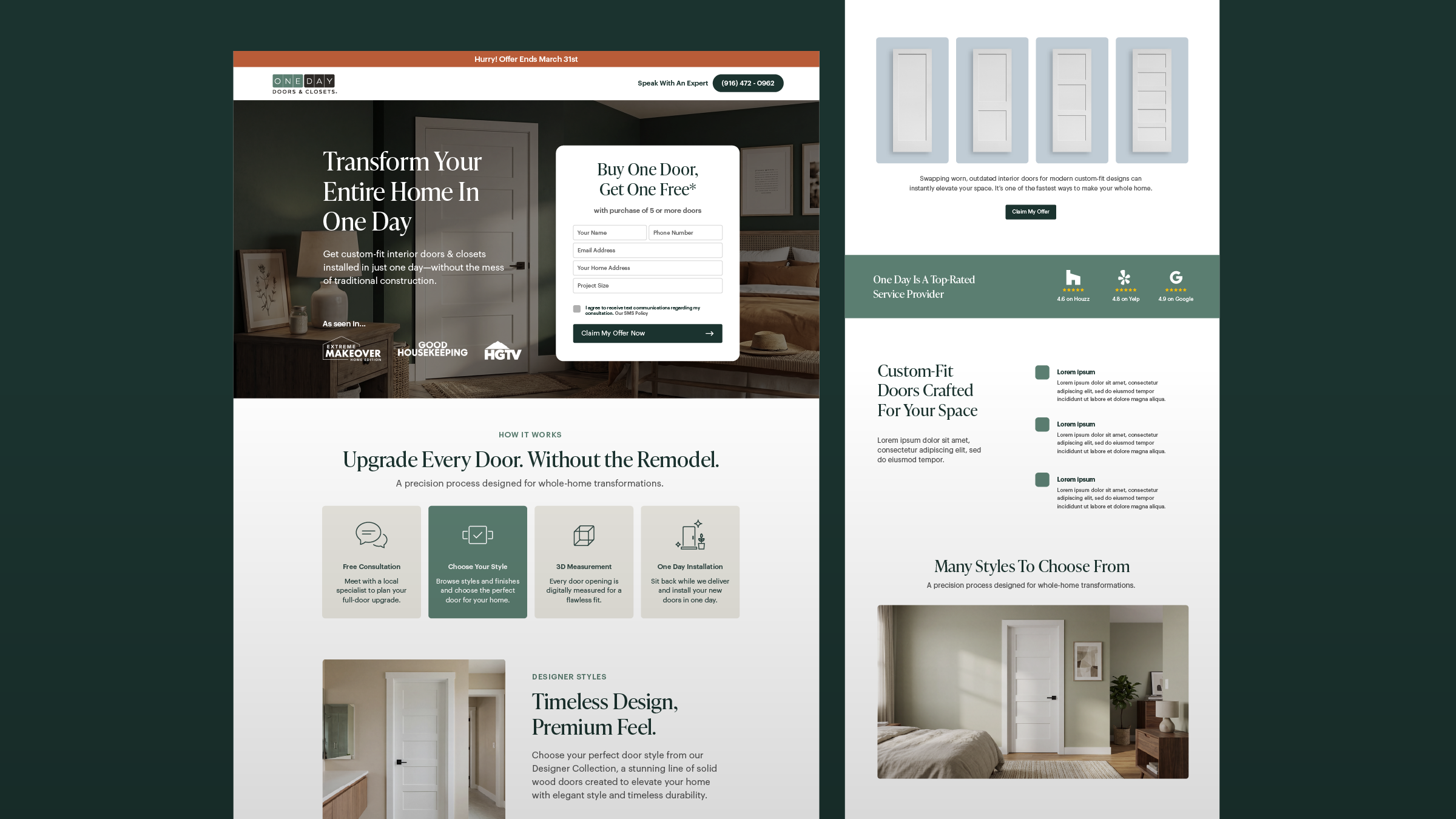 Landing Page System for One Day Doors & Closets